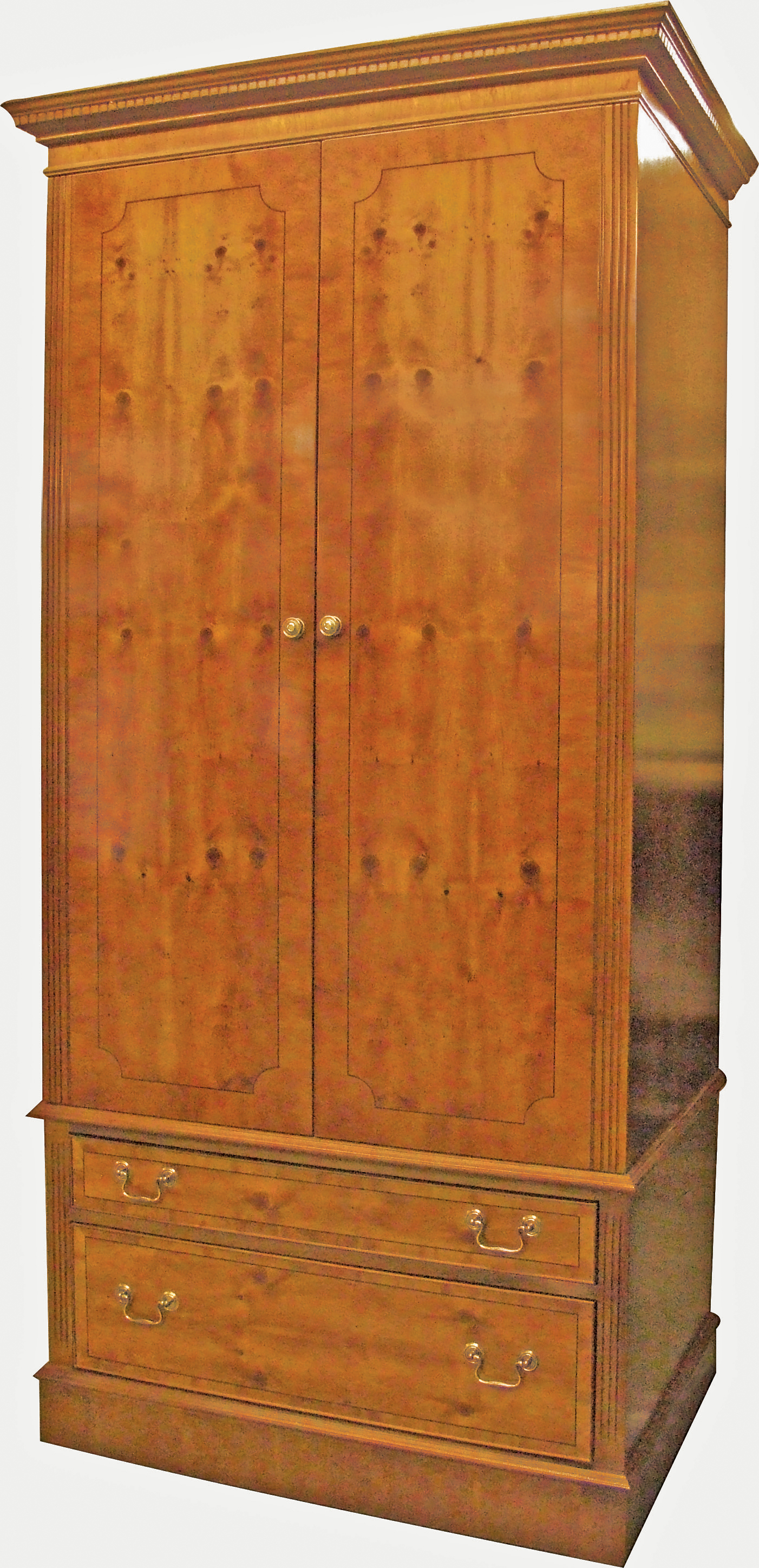2 Door 2 Drawer Wardrobe - For those of us who enjoy a comfortable, traditional bedroom these wardrobes are ideal - you can even take them with you if you move house! Available in Mahogany, Yew, Oak and Cherry they can be made to any size and design. Various options can be specified for the internal storage also.