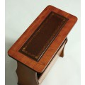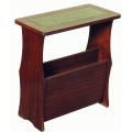 Magazine Rack Leather Top - A small table with shaped sides and leather gilt embossed surface. Storage on 2 sides for magazines.